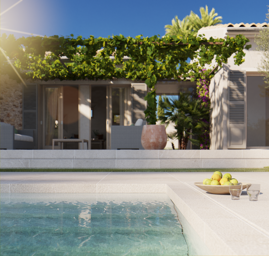 Stap naar buiten en omarm de rust van uw privé-oase. Het ontwerp omvat verschillende charmante pergola’s, een zwembad van 34 m² en een groot overdekt terras, perfect voor ?al fresco? dineren, koffie in de ochtend of gewoon om te ontspannen terwijl u geniet van de rustige omgeving. Mooie stenen muren voegen een vleugje rustieke elegantie